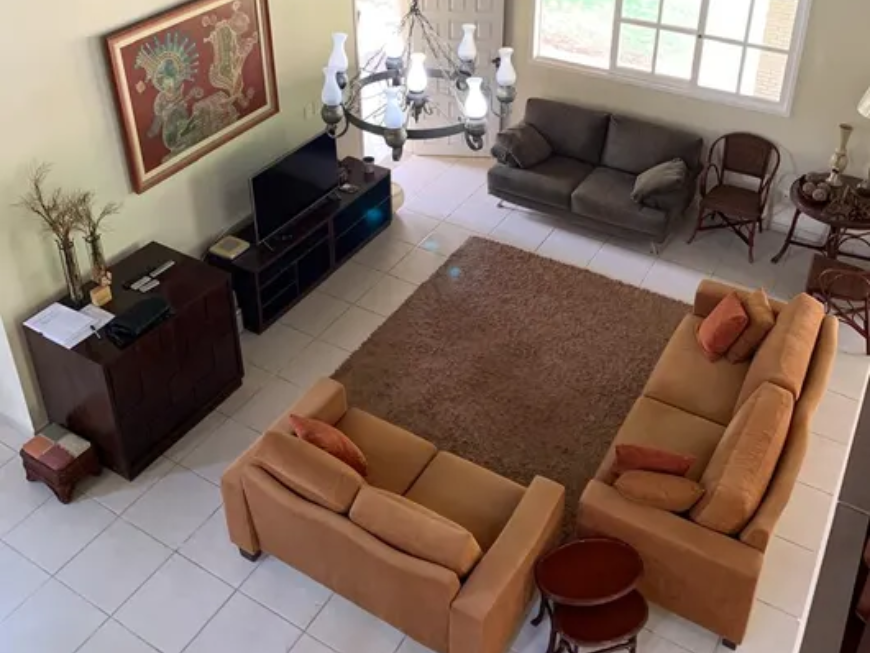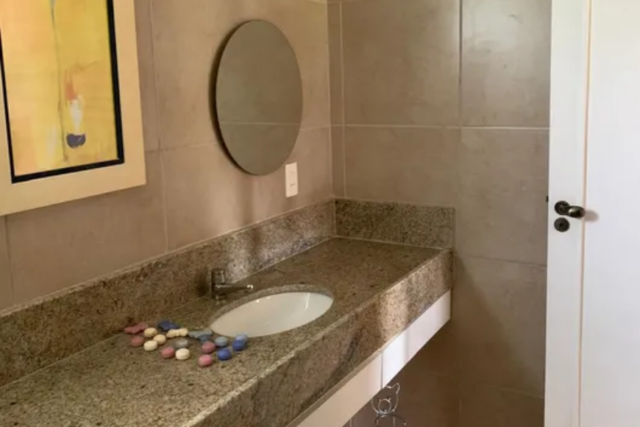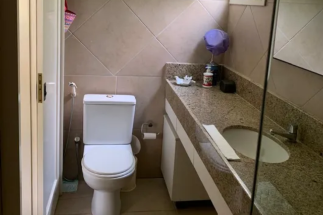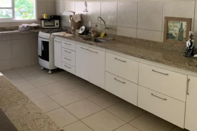Térreo: varanda em L, sala ampla com cozinha integrada, 1 suíte com closet, lavabo, área de serviço, despensa, quarto e banheiro de serviço, garagem coberta para 2 carros;