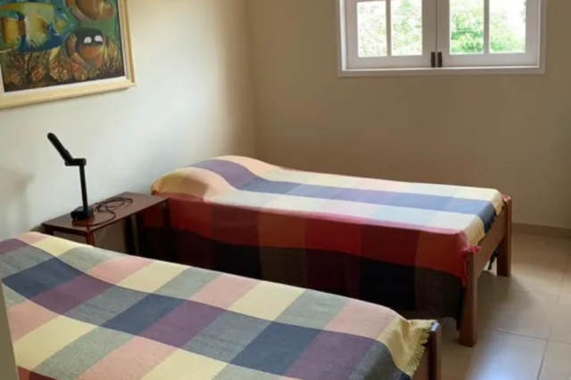Piso superior: mezanino, 2 quartos e banheiro social.