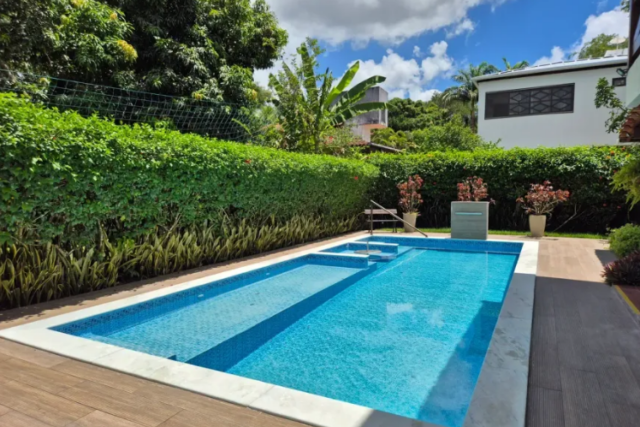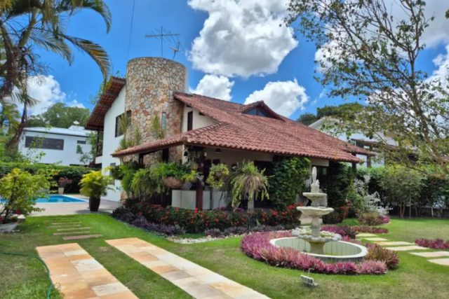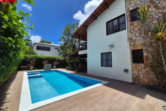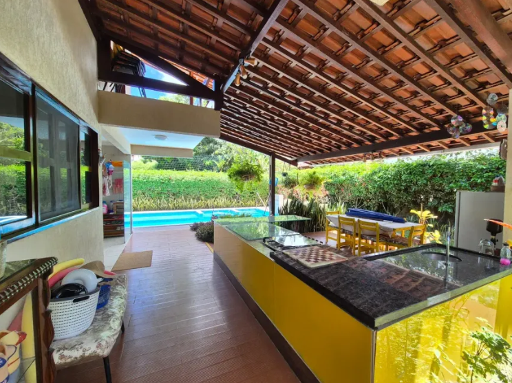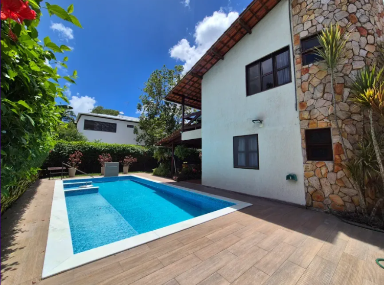 Casa charmosa para venda, localizada no condomínio Casa Grande D’Aldeia com piscina, 4 quartos (sendo 3 suítes e 2 delas com varanda), 280m² de área construída em um lote com 700m².