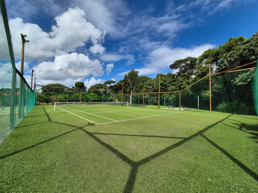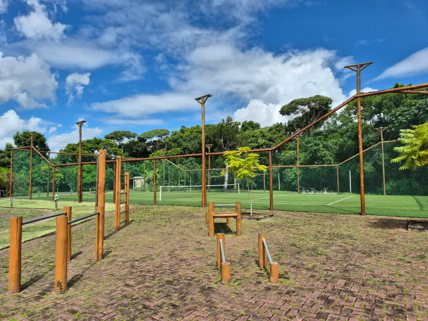 Condomínio com excelente área de lazer: salão de festas, 2 espaços gourmet, parquinho com diferentes brinquedos, salão de festas, academia, brinquedoteca, playkids, sala de jogos, espaço gourmet com churrasqueira, complexo aquático com 700m² com piscina para adulto, criança e piscina com raia, futebol society, vôlei de praia, quadra poliesportiva, quadra de tênis, ciclovia, pista de cooper, circulação com acessibilidade e faixa de área verde, ruas verdes entre os terrenos criando duas frentes e belíssima mata preservada.